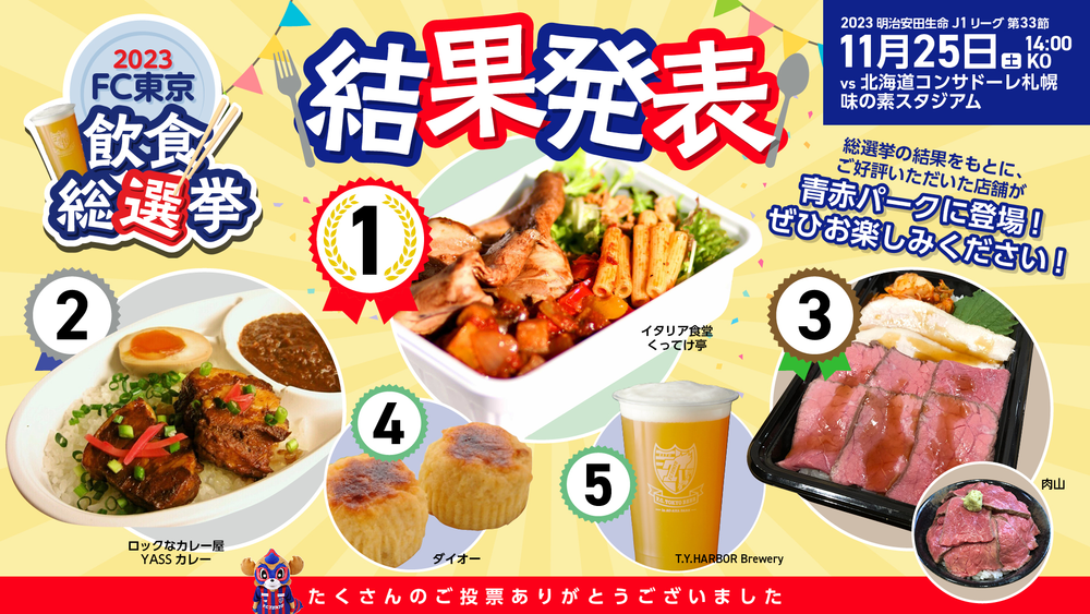 山岡さんのブログにも記載の通り、「2023 FC東京 飲食総選挙」の結果をもとに、出店されます。