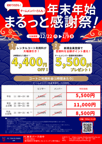 いつもの仲間との蹴り納めや、懐かしい友人たちとの再会にいかがでしょうか!