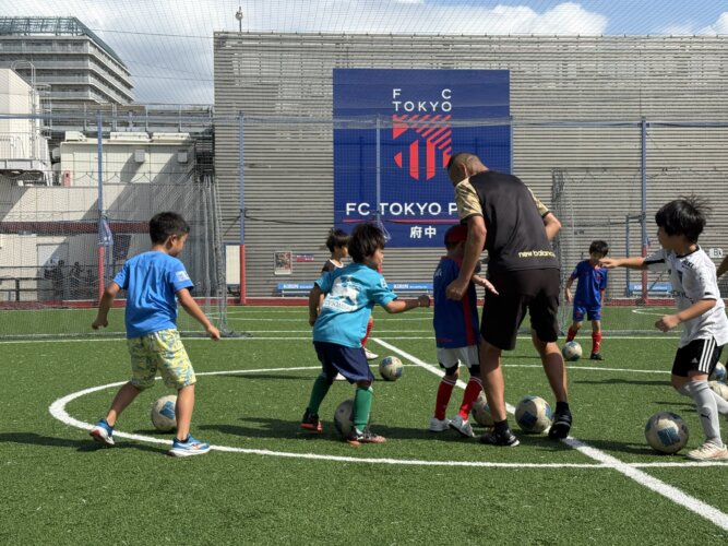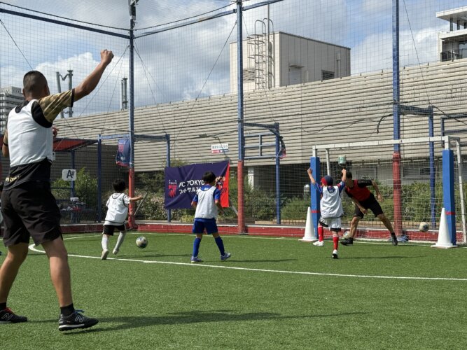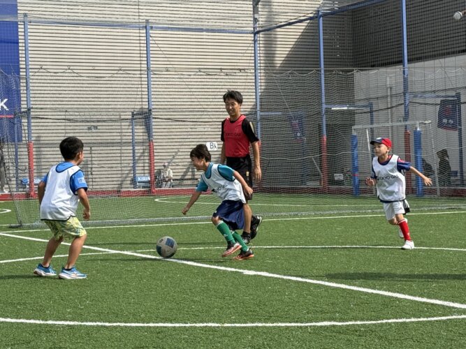 試合をしながらFC東京スクールのコーチが