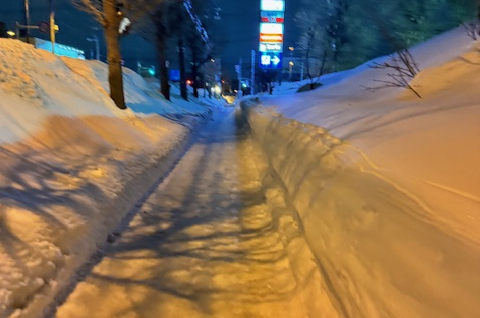 道路の端っこは私よりはるかに高い雪の壁があり、