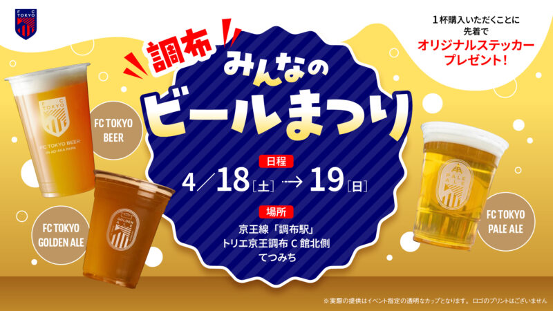 4月18日(土)・19日(日)に開催される『調布みんなのビールまつり』にてFC東京オリジナルクラフトビールを販売いたします!