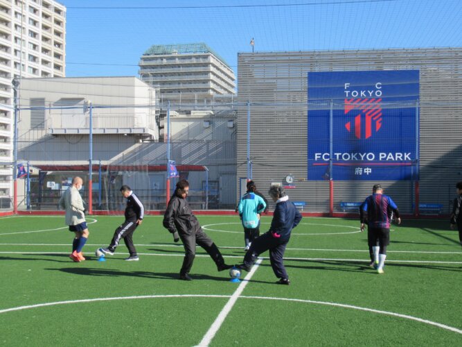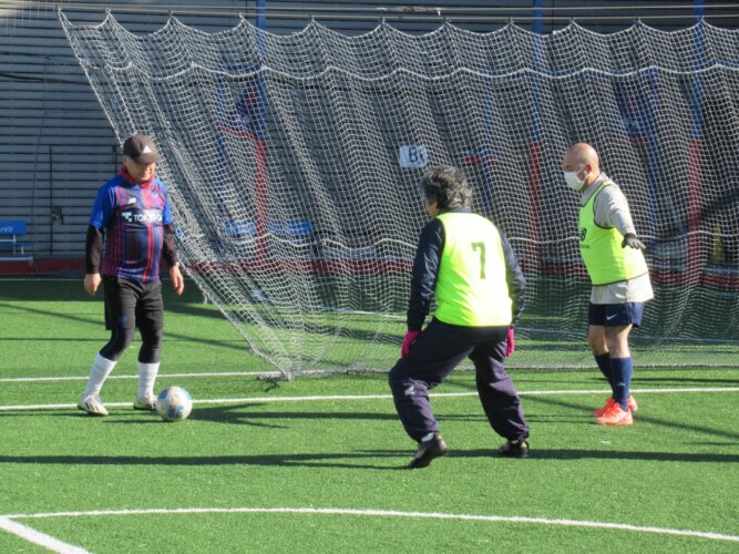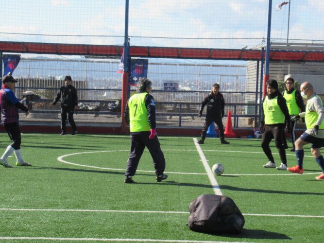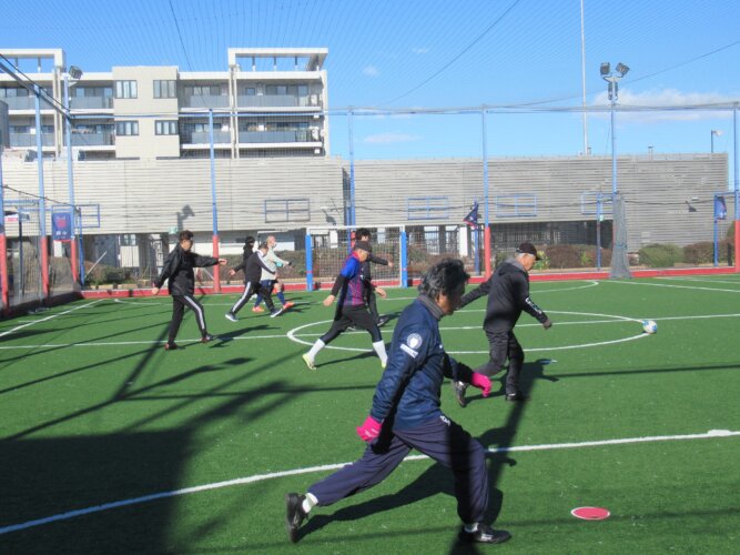 遠くに富士山が見える冬らしい快晴の中、みなさん和気あいあいとボールを蹴っていました。