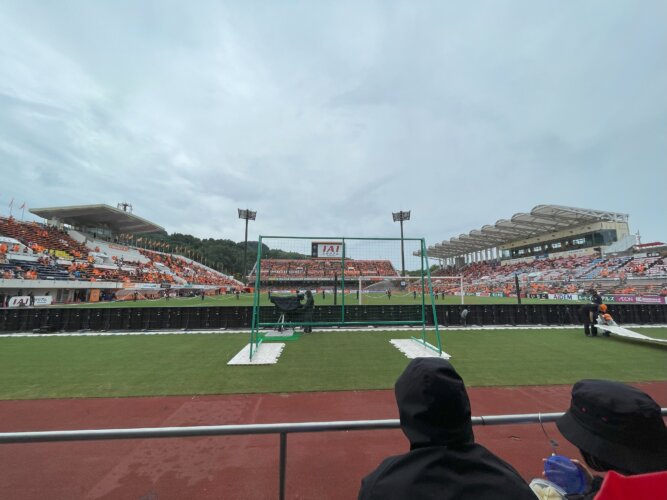 天気は雨でしたが、席が前から2列目と、とてもピッチから近い席でした!